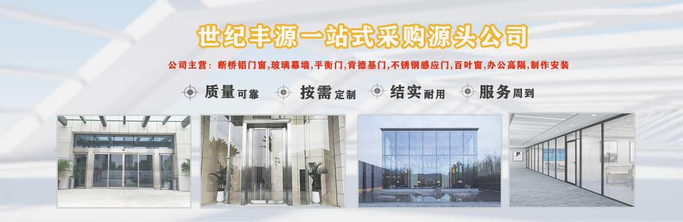 天津世紀豐源門窗有限公司從事斷橋鋁門窗,玻璃幕墻,平衡門,肯德基門,不銹鋼感應門,百葉窗,辦公高隔,制作安裝一站式訂制生產(chǎn)及配套服務等。 公司自成立以來,始終堅持以人才為本、誠信立業(yè)的經(jīng)營原則,薈萃業(yè)界精英,成熟的技術(shù)、管理方法及企業(yè)經(jīng)驗與國內(nèi)企業(yè)的具體實際相結(jié)合,為企業(yè)供給各個方面的解決方案,使企業(yè)在激烈的市場競爭中始終堅持競爭力,實現(xiàn)企業(yè)快速、穩(wěn)定地發(fā)展。 質(zhì)量好、服務好、才能信譽好,公司已在諸多領(lǐng)域取得輝煌成績,愿意成為您可信賴的長期合作伙伴。 讓我們攜手同行,共同實現(xiàn)“讓普通老百姓都用得上高端門窗”...